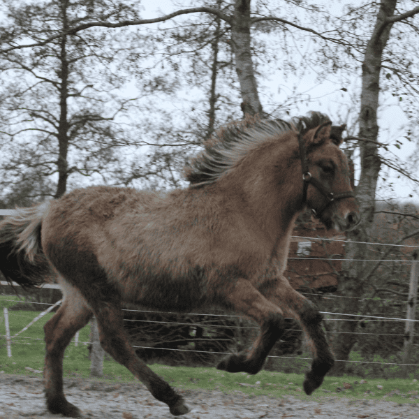 Gezien zijn ouders verwachten we dat hij een heerlijk no-nonsense betrouwbaar buitenrijpaard gaat worden in de toekomst. Hij is een vijfganger en een natuurtölter. Hij is wildkleurbruin en heeft een prachtige aalstreep en zebrastrepen op zijn benen. Een echte beauty.