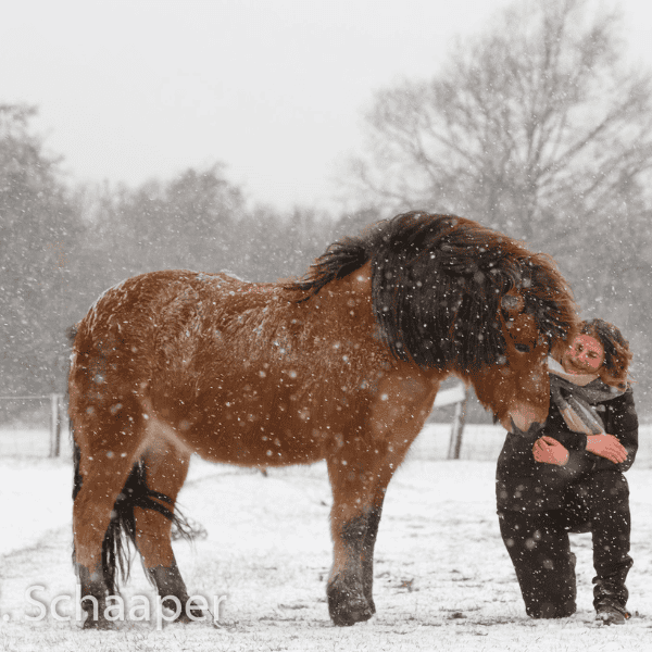 Zo is hij niet onder de indruk van groot verkeer, loopt zonder enige twijfel de trailer op en de smid is zijn beste vriend. Wel heeft Mímir een duidelijk en vooral consequent mens nodig, zowel op de grond als onder het zadel, anders trekt hij zijn eigen plan. Ben jij altijd duidelijk voor hem? Dan is hij fijn voorwaarts met een goede “ho”. Voor echte beginners of angstige ruiters acht ik hem niet geschikt op de lange termijn.